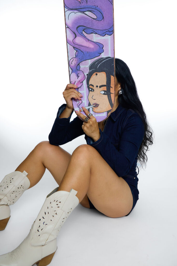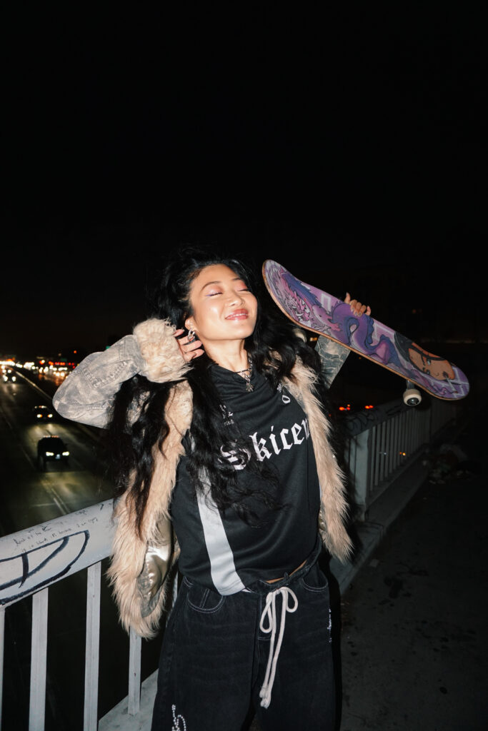A couple of talent agencies discovered me from my clips; that’s one thing that skating has brought me. I get calls or texts for different modeling gigs. I also run a photo studio in DTLA. Other than that, I actually went to school for business and advertising. So I freelance a bit, you almost have to, out here.