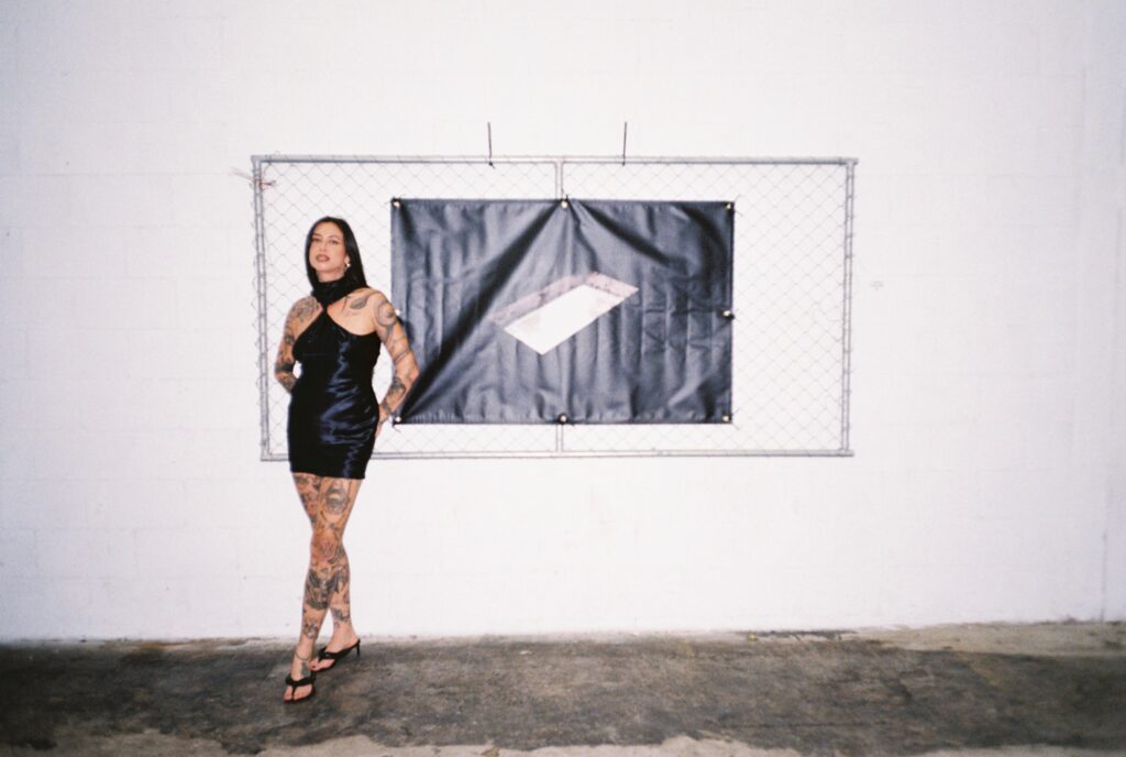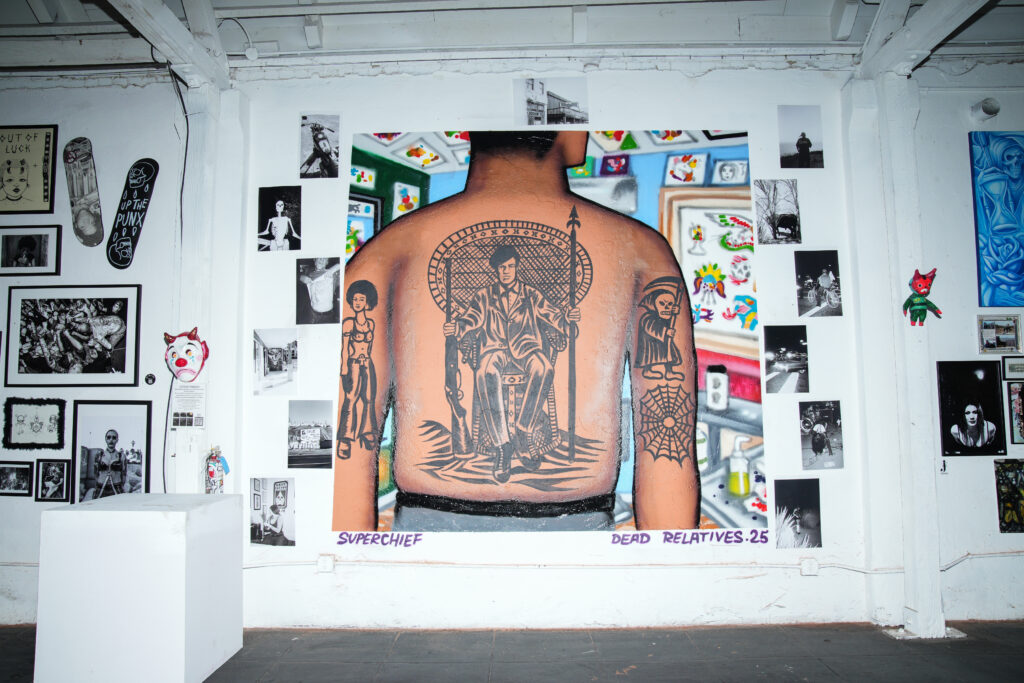I was invited to the space on a timid Thursday evening last month by Leslie Puett, a tattoo-enthusiast film photographer, for her first ever book release. The showing featured five photos blown up on 55×36-inch scrim vinyl canvases, and one extra printed on scrap metal.